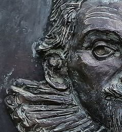 "Für die Darstellung von Heinrich Schütz wählte ich als Vorlage einen Druck aus dem Jahr 1627, der ihn als 42jährigen Mann in höfischer Tracht abbildet... Natürlich ist nun „mein“ Schütz entstanden, wie ich ihn sehe. Ich habe mich zwar an den Druck von 1627 gehalten, aber eine neue plastische Interpretation des Aussehens von Heinrich Schütz in jungen Jahren geschaffen."