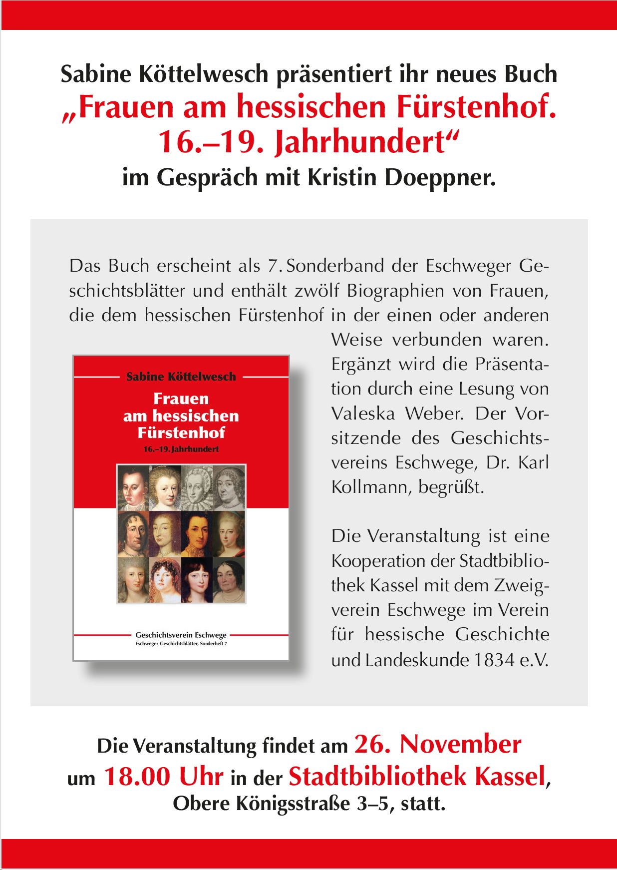 Im Gespräch mit Kristin Doeppner wird Sabine Köttelwesch "aus dem Nähkästchen" berichten, wie sie der Geschichte der starken Frauen auf die Spur gekommen ist. Sie hat Orte aufgesucht, Schlösser und Herrenhäuser besichtigt und deren Bewohner interviewt. Viel Kurioses hat sie erlebt...