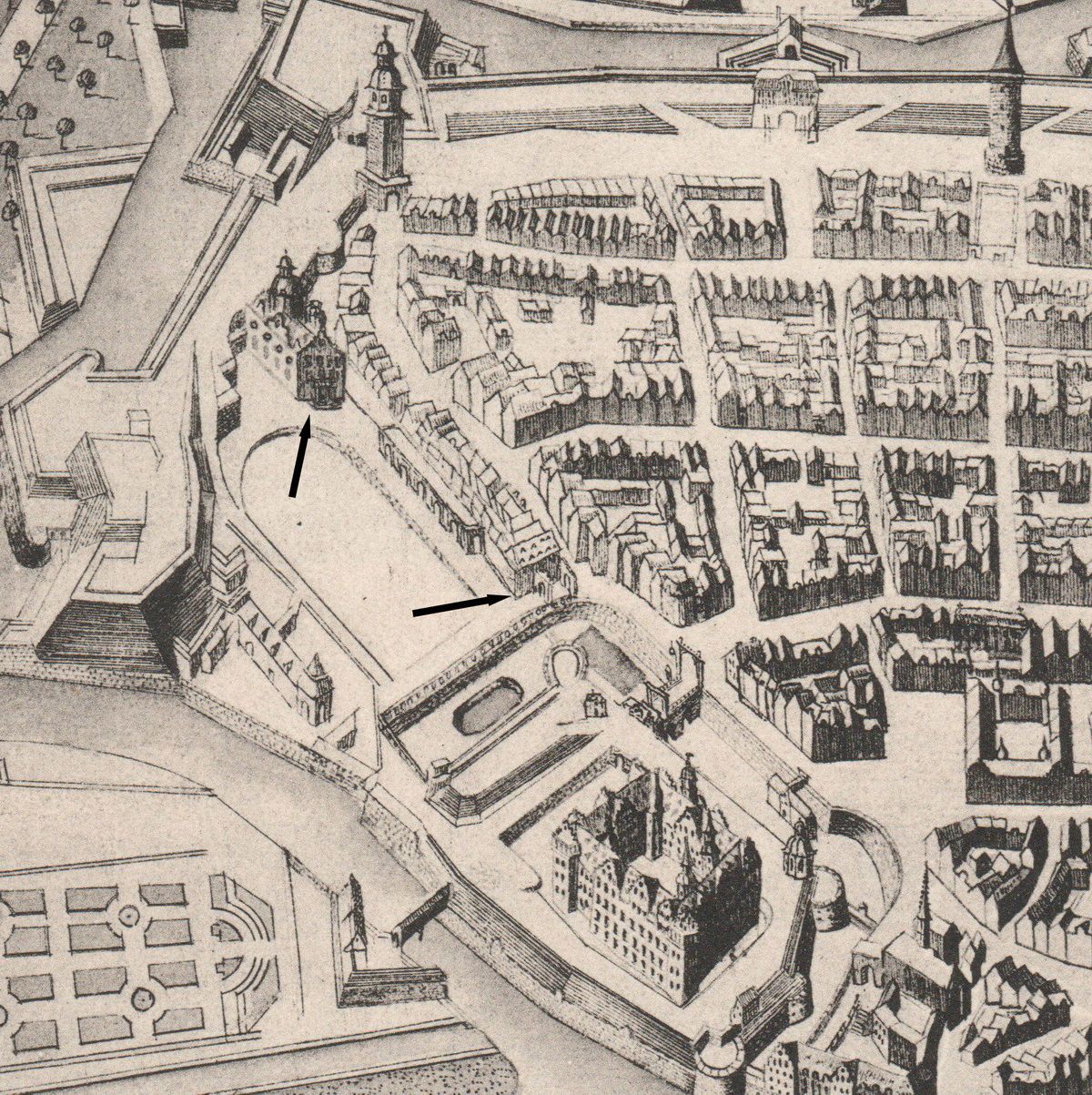 Stadtplan von Wessel 1673 zeigt zwei Spielorte, das Ballhaus und das Comedienhaus.
