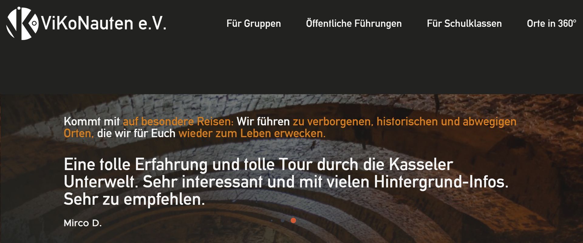 Der ViKoNauten e.V. ist ein gemeinnütziger Verein, der Kultur- und Bildungsprojekte in Kassel initiiert und durchführt. Im Fokus des Vereins stehen vor allem die unbekannten und verborgenen Orte der Stadt. Durch die starke Zerstörung der Stadt im Zweiten Weltkrieg finden wir vor allem unter der Erde authentische Orte, die Kasseler Stadtgeschichte erzählen.