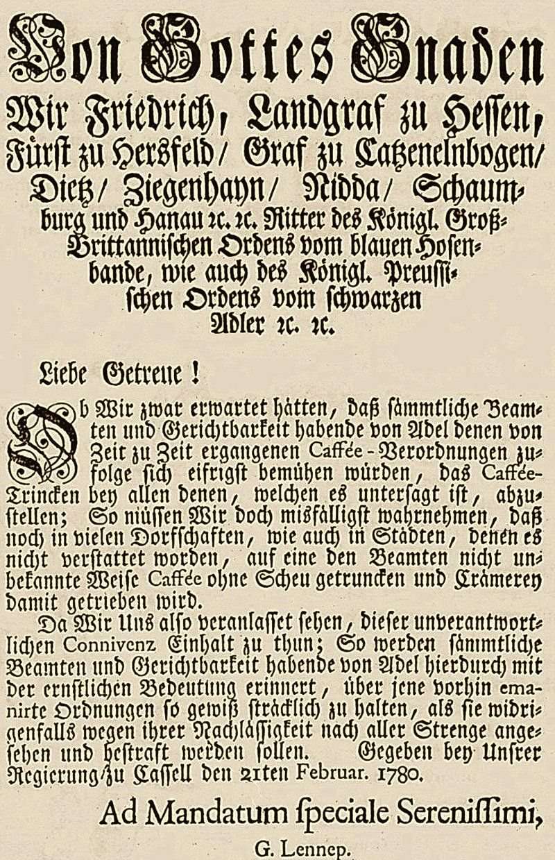 Verordnung wider das Kaffee-Trinken